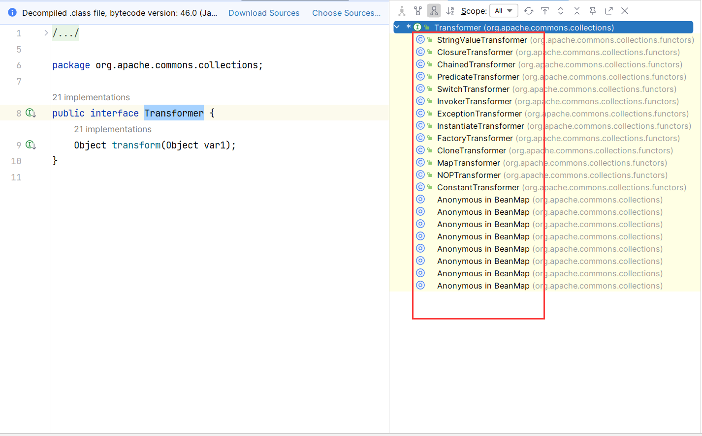 该类实现了 Transformer 接口与 Serializable 接口,定义如下: