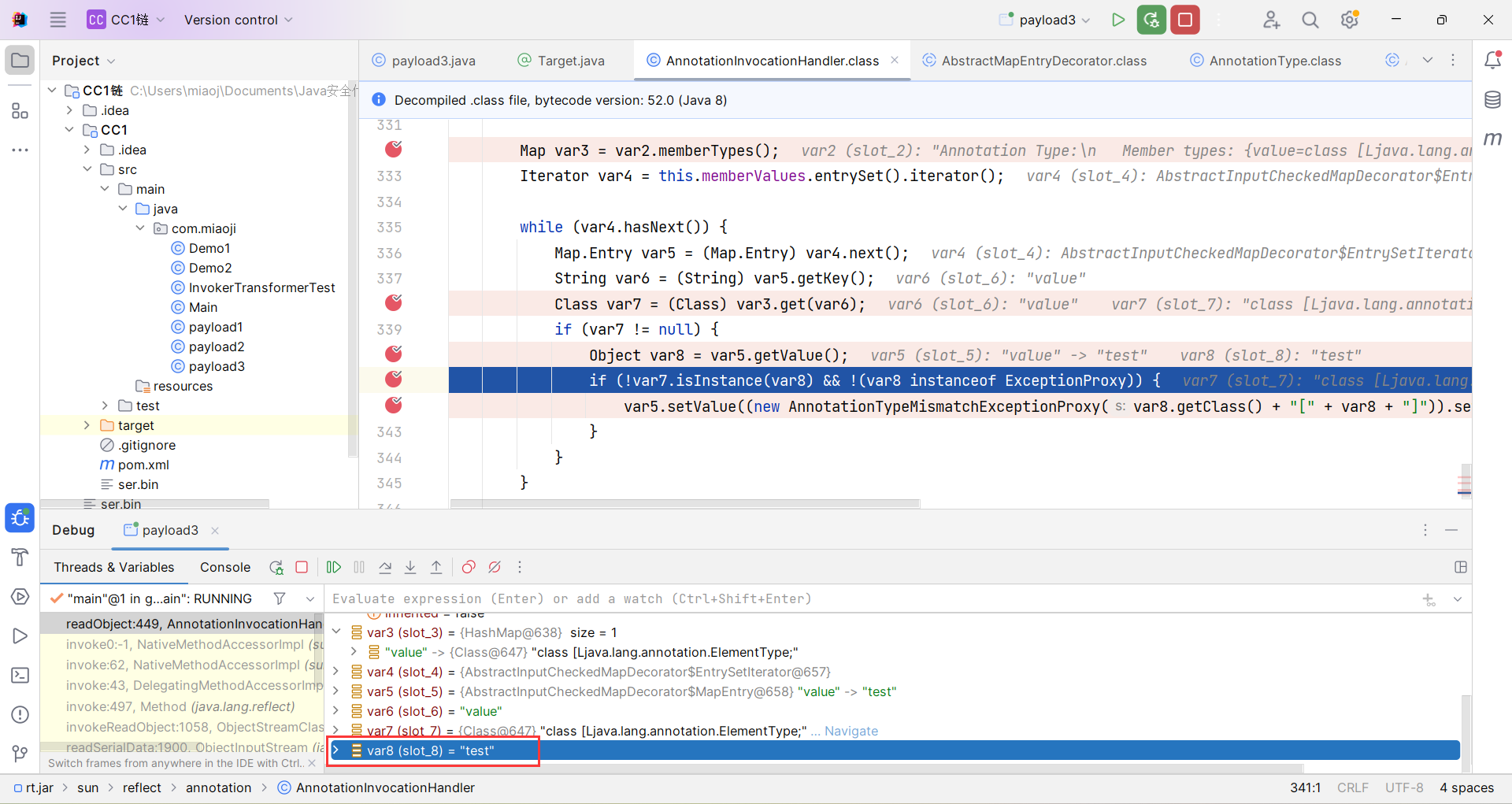 var8 获取到的是 payload3 中传入的 map 值,这也在预期之中。