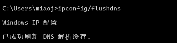 Windows cmd 窗口输入以下命令刷新 DNS 解析缓存:
