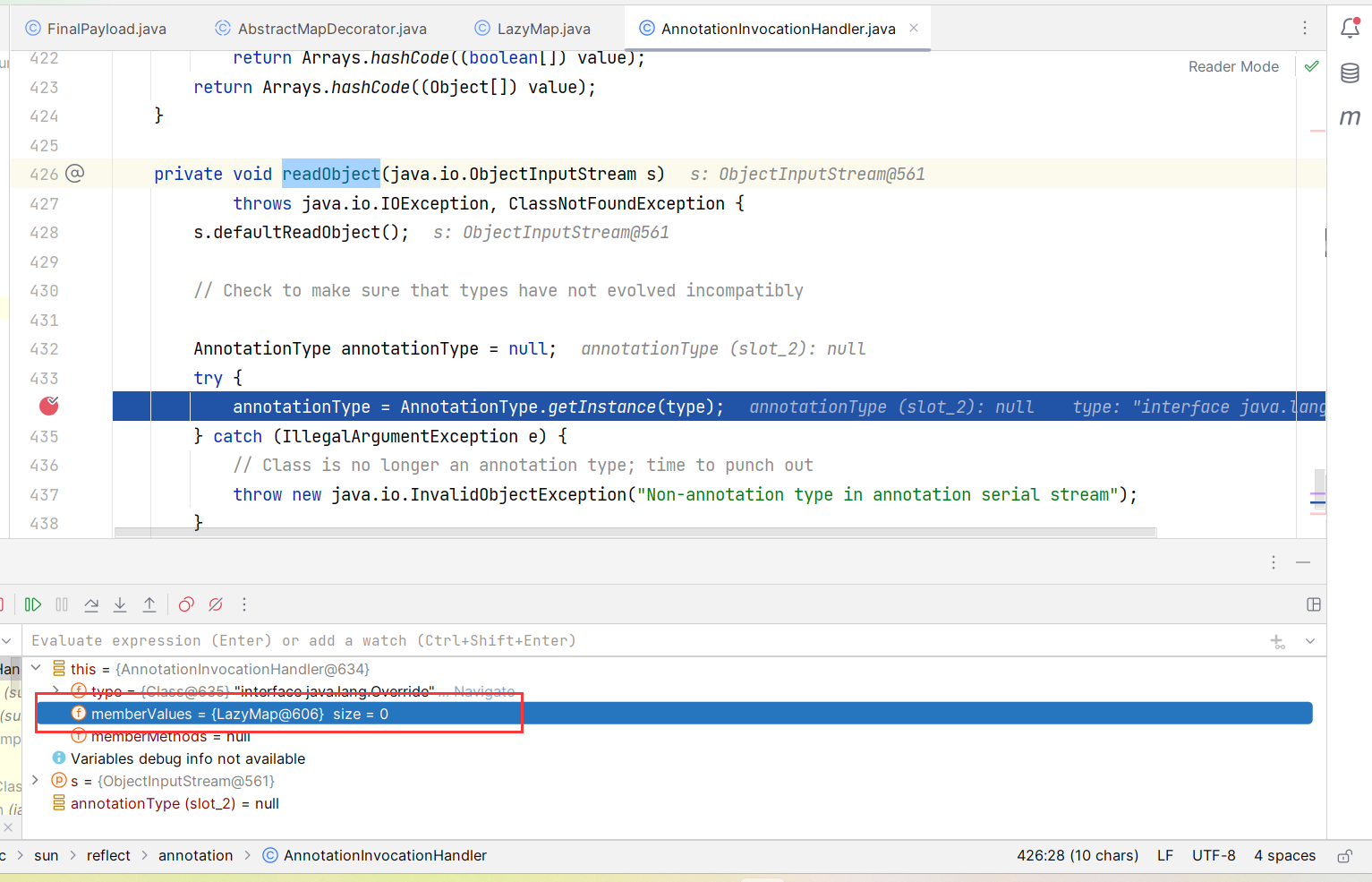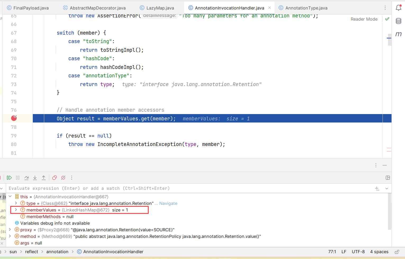 memberValues 是 AnnotationInvocationHandler 类的属性: