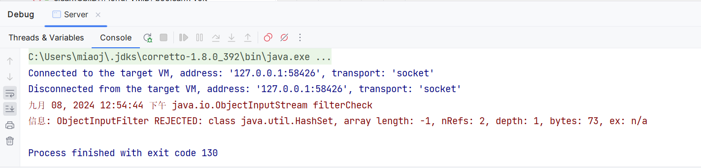 这在我之前的分析文章中也提到过,是由于 JEP 290 机制阻止了我反序列化 HashSet 类。