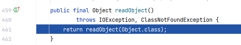 然后会在这里调用 ObjectInputStream 的 readObject 方法: