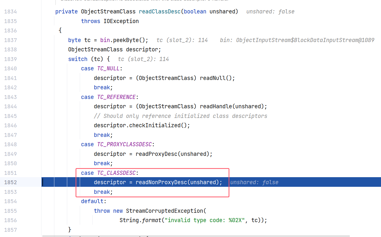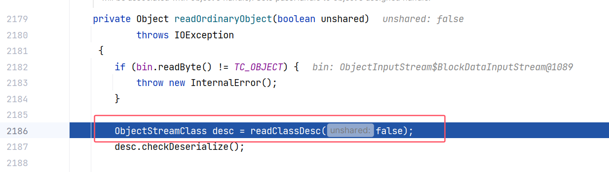 跟进 ObjectInputStream#readClassDesc(boolean) ,这个方法用于返回一个类描述符: