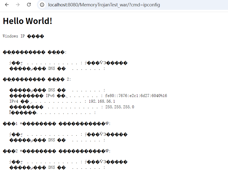 用 jsp 写的,获取参数为 cmd 的值并执行,但是无回显。
