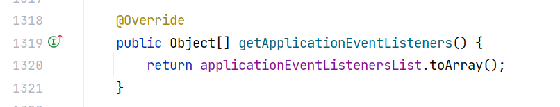 从下往上找这个 listener 是哪来的,最终找到 instances[] 数组。这个数组又是通过 getApplicationEventListeners 获取的,跟进一下: