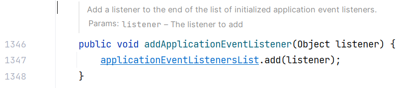 有 setApplicationEventListeners 方法和 addApplicationEventListener 方法。添加单个 listener 还是 addApplicationEventListener 用起来更简便一些。