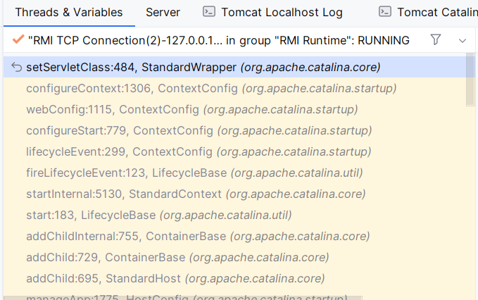 Servlet 初始化 在 org.apache.catalina.core.StandardWrapper#setServletClass() 处下断点调试,调用栈如下: