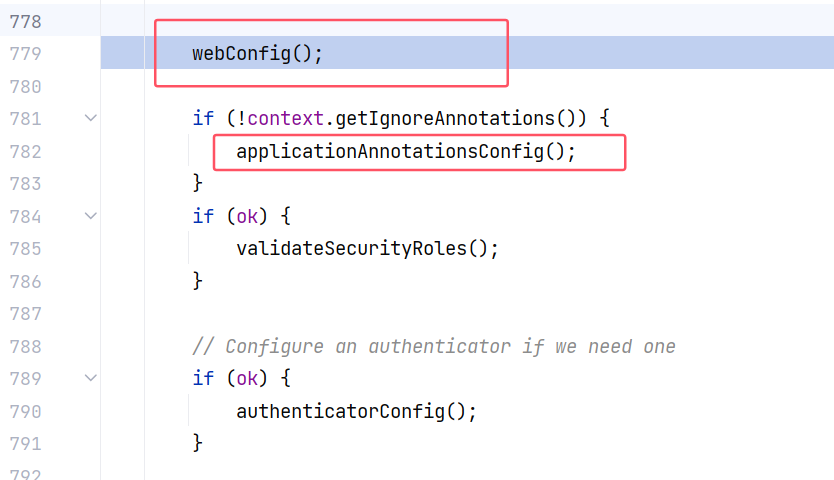 它跟 web.xml 文件配置的分叉点在 ContextConfig#configureStart() 中: