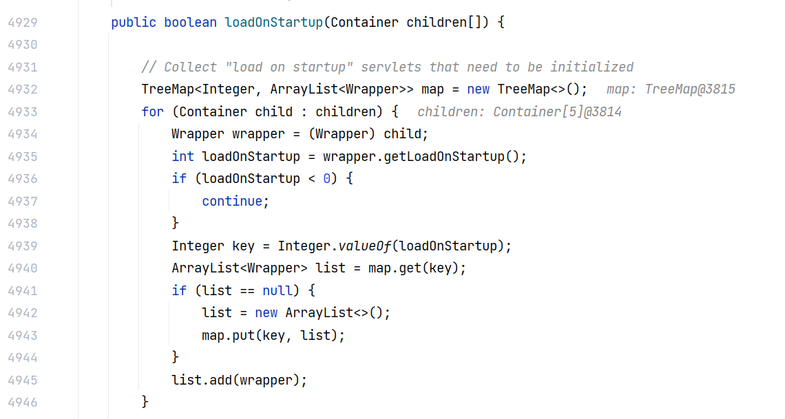 进入 StandardContext#loadOnStartUp(Container) 看看: