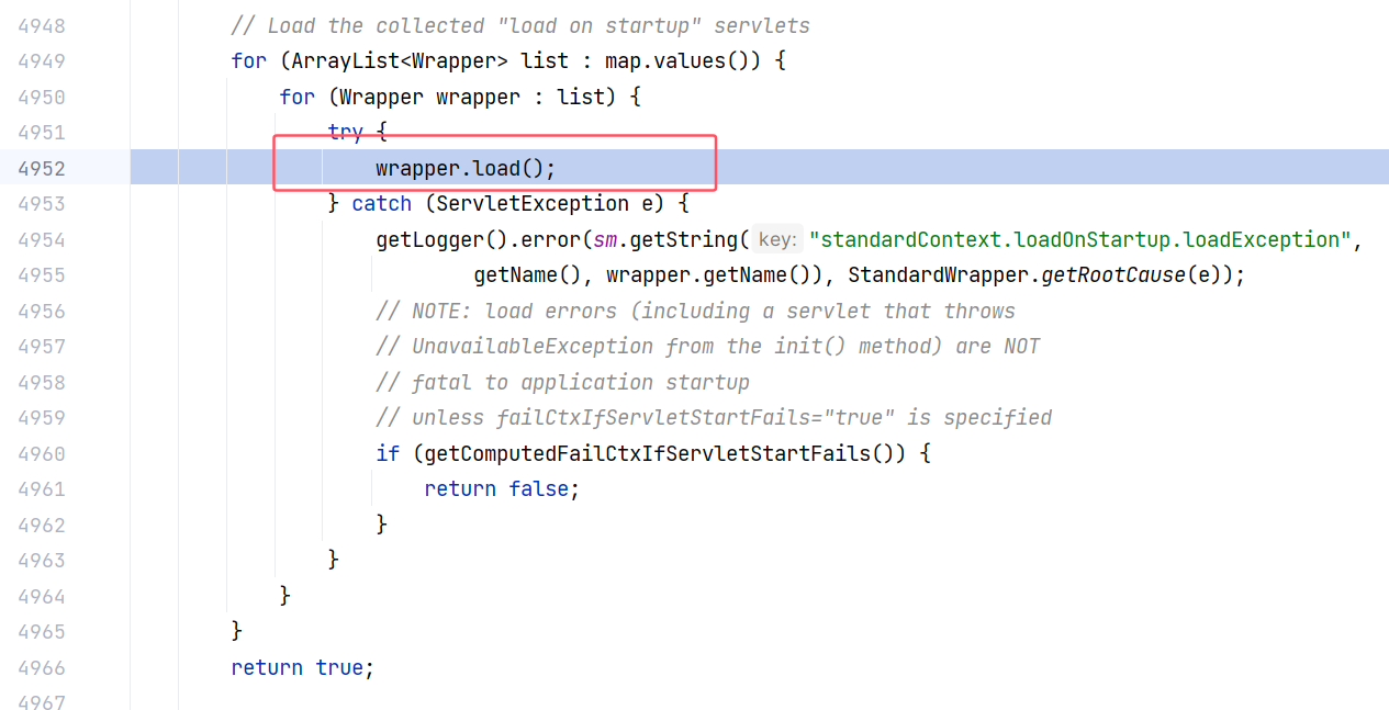二是调用 StandardContext#loadOnStartup(Container) ,最终调用 StandardWrapper#loadServlet() 完成 Servlet 装载。