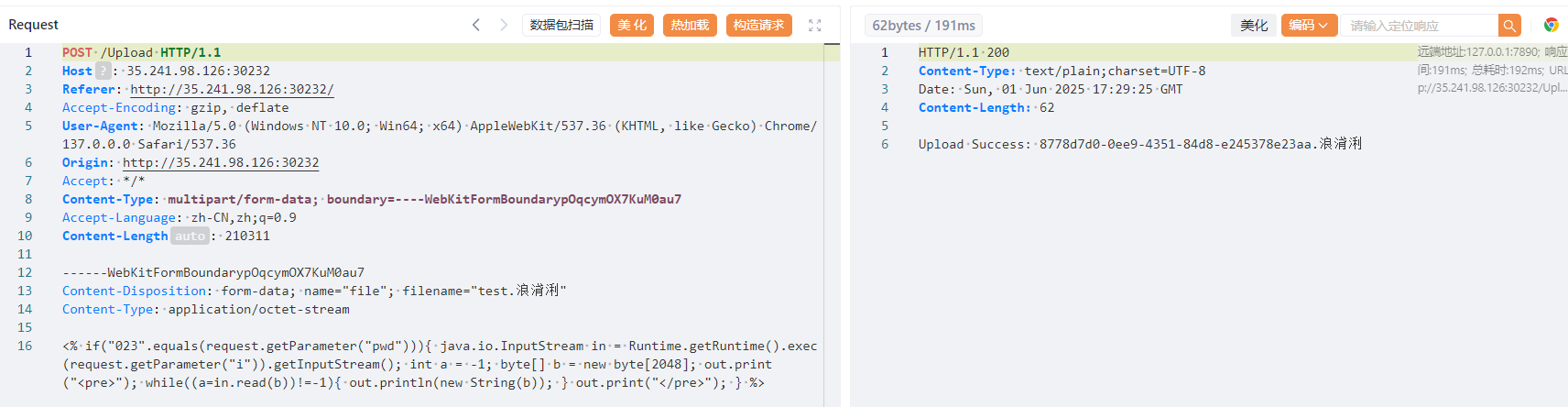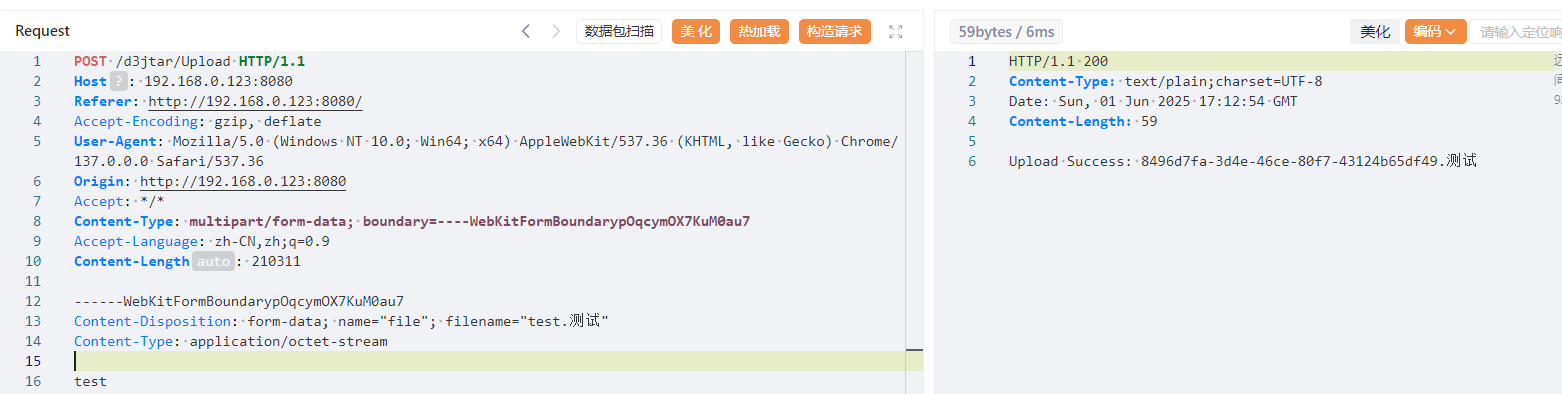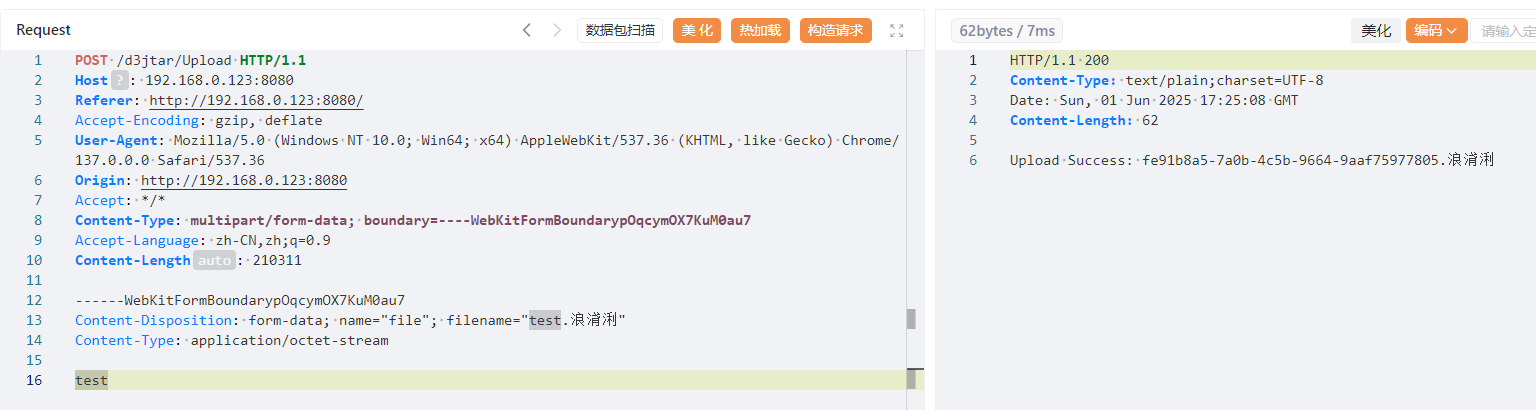4、由于上传文件有后缀黑名单,故不可能直接上传 .jsp 文件。那么可能是上传某个后缀名经过压缩和解压缩变换之后得到了 .jsp 后缀名。