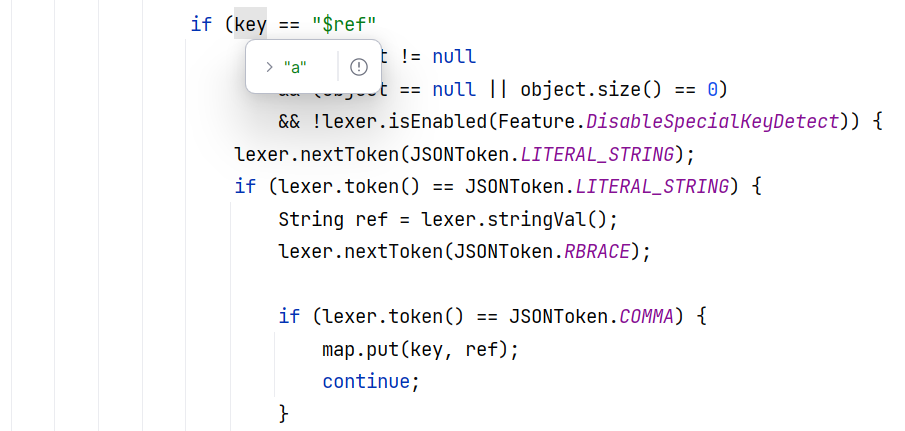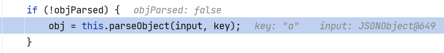 这部分处理后续仍然调用 DefaultJSONParser#parseObject(final Map, Object) ,并传入当前 key ,目的是递归式的处理 a 键的子元素: