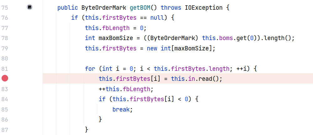 BOMInputStream#getBOM() ,这里循环调用 this.in.read() 写入数据: