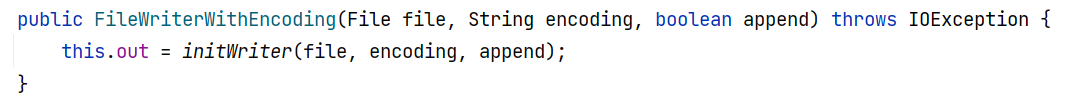 this.out 是一个 Writer 对象,在 FileWriterWithEncoding 构造方法中被赋值,其接受一个文件对象,并为该文件创建一个 Writer :